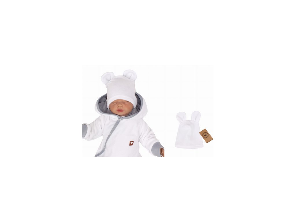 Z&Z Velurová, semišková čepička s oušky Teddy, bílá
