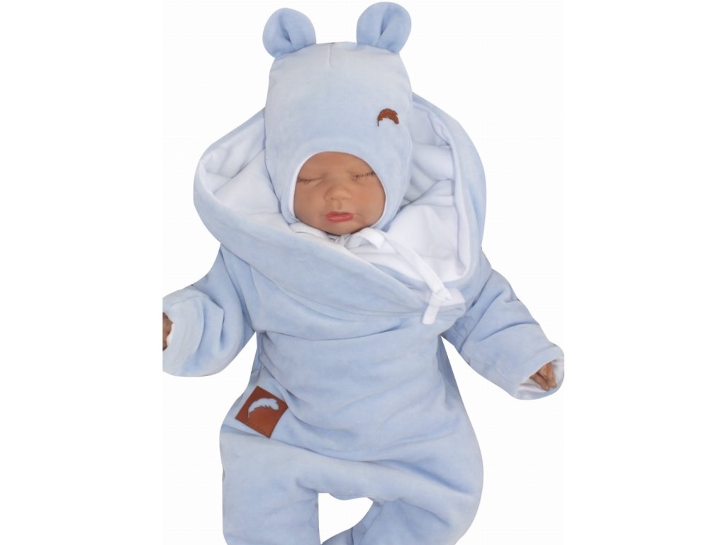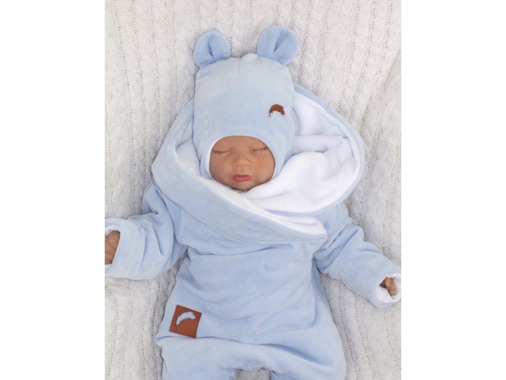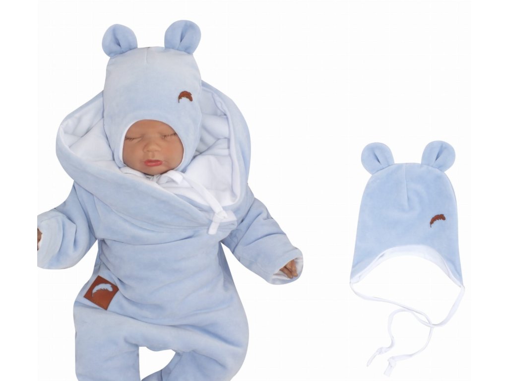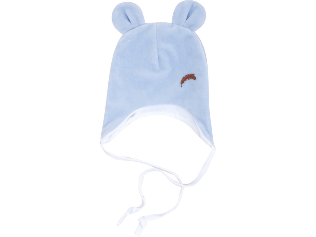 Z&Z Velurová čepice na zavazování s oušky - modrá