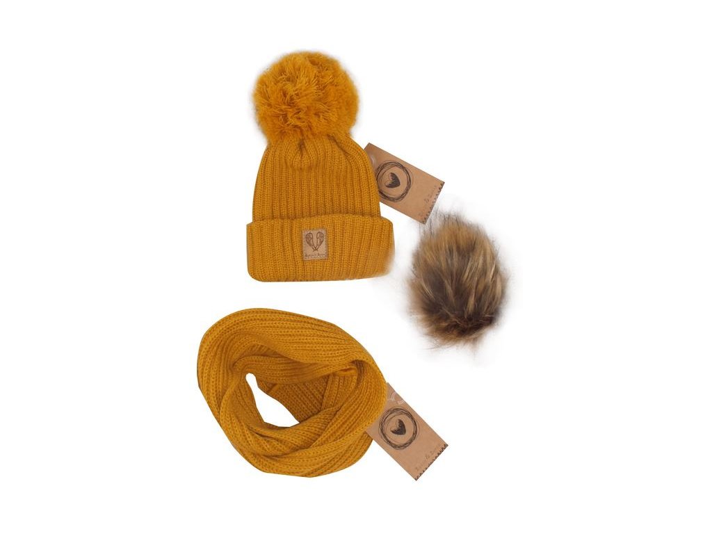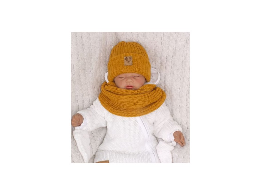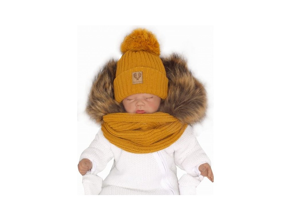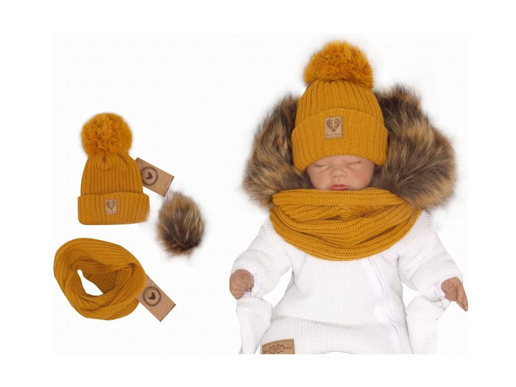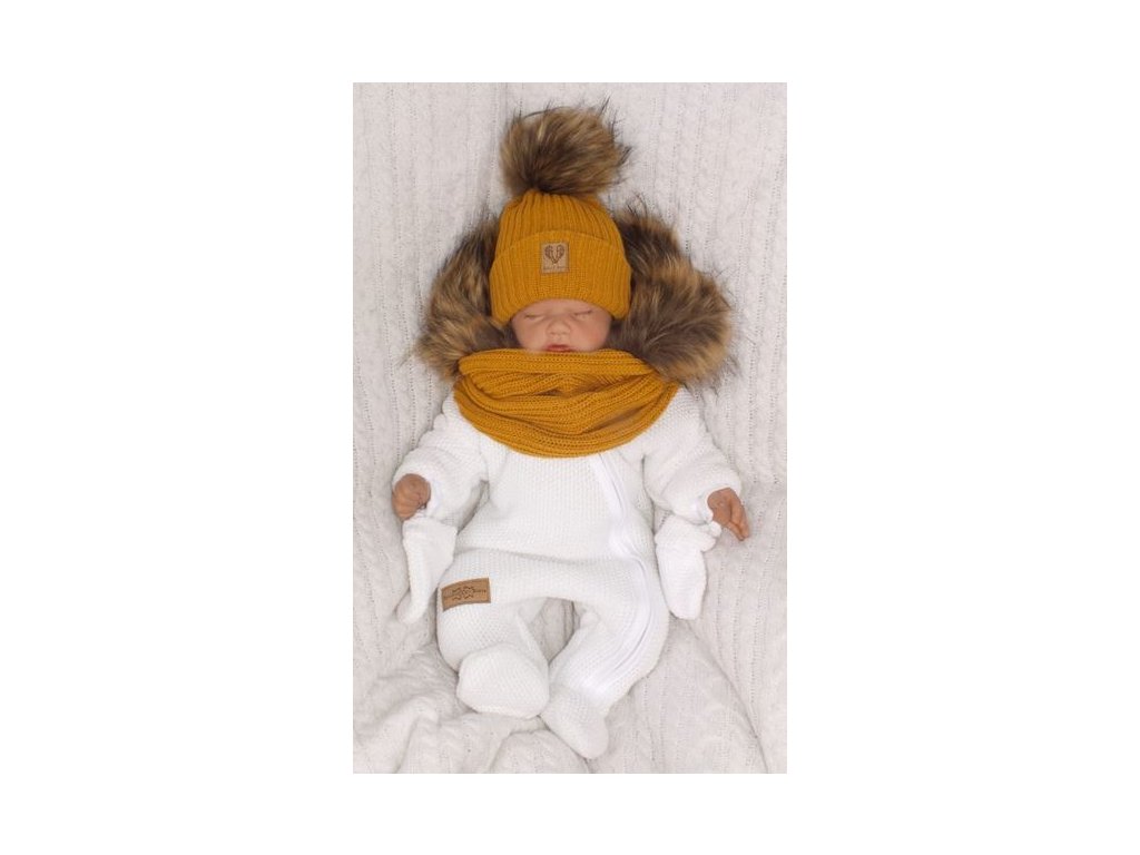 Z&Z Zimní čepice 3v1 + komínek, medová hořčice