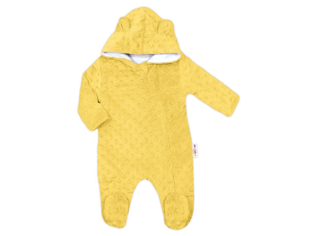 Baby Nellys Kombinézka/overálek MINKY s kapucí a oušky - žlutá