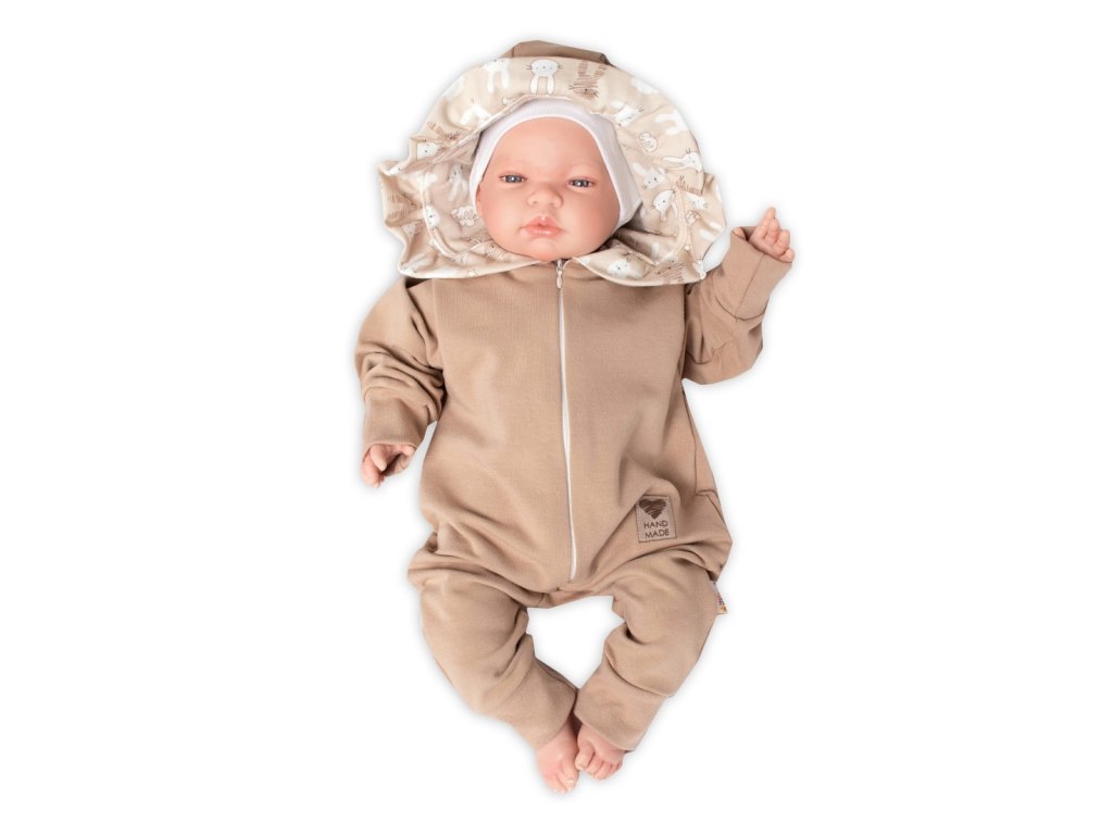 Baby Nellys Teplákový overal s kapucí a volánkem, New Bunny - cappuccino