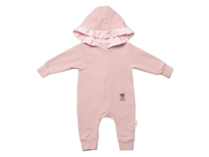 Baby Nellys Teplákový overal s kapucí a volánkem, New Bunny - pudrová