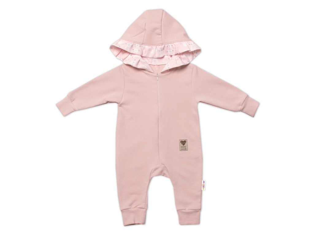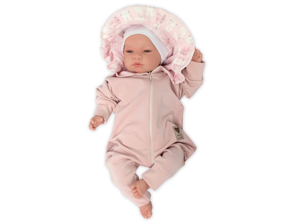 Baby Nellys Teplákový overal s kapucí a volánkem, New Bunny - pudrová