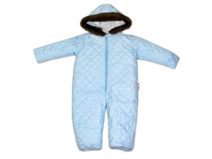 Kombinéza s kapucí a kožíškem Baby Nellys ®prošívaná, bez šlapek - sv. modrá
