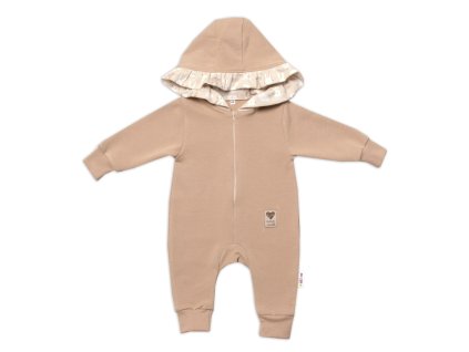 Baby Nellys Teplákový overal s kapucí a volánkem, New Bunny - cappuccino