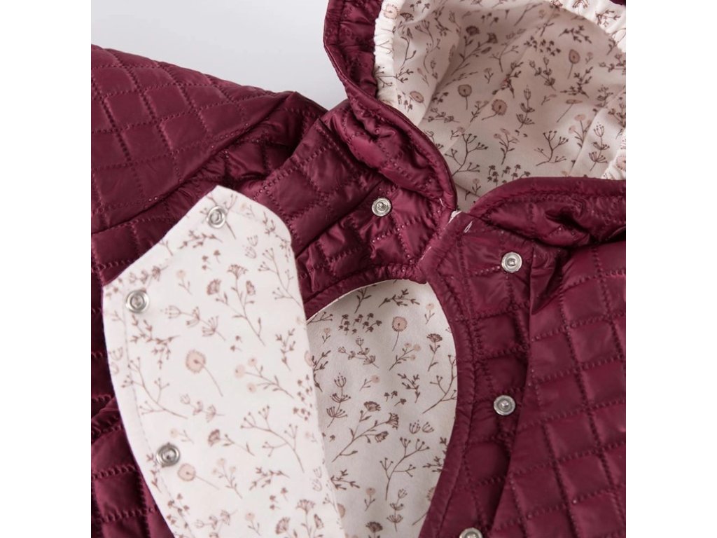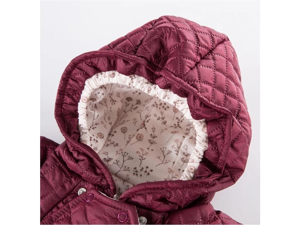 EEVI Dětská přechodová, prošívaná kombinéza s kapucí Bloom - bordó