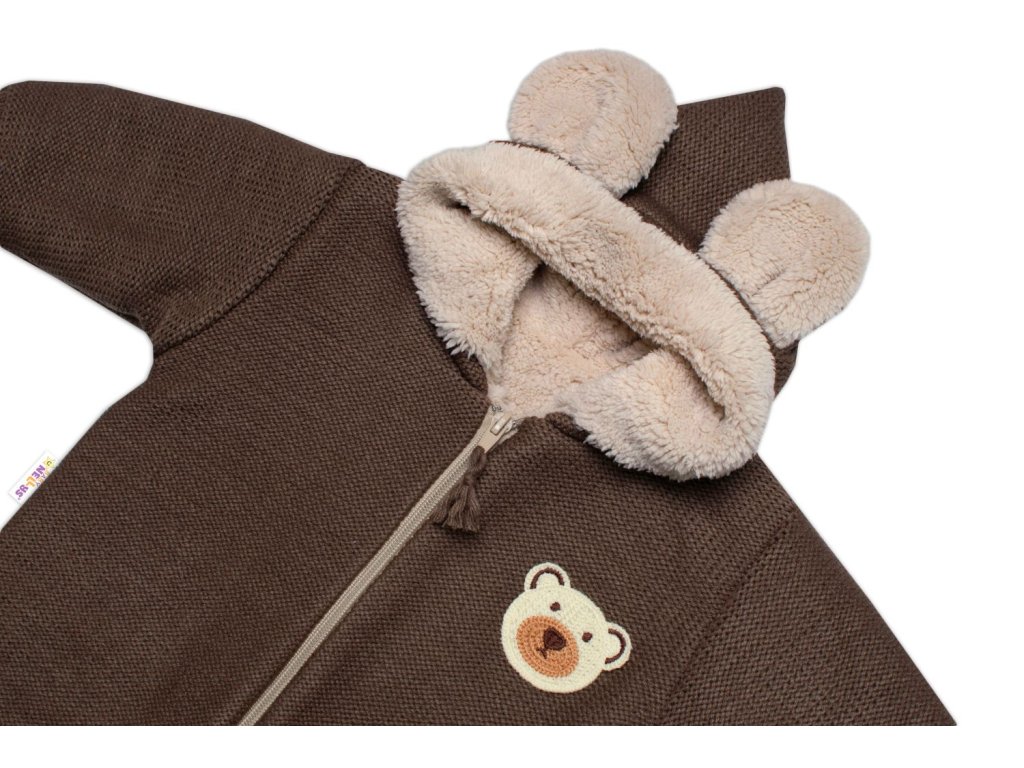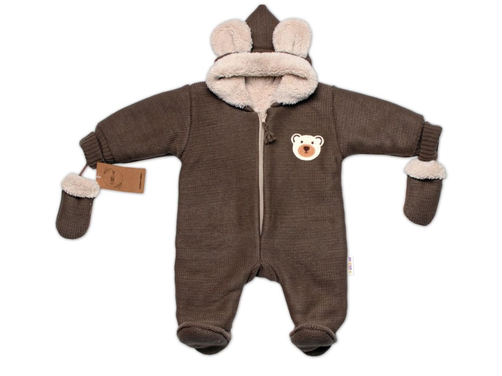 Oteplená pletená kombinéza s rukavičkama Teddy Bear, Baby Nellys, dvouvrstvá, hnědá