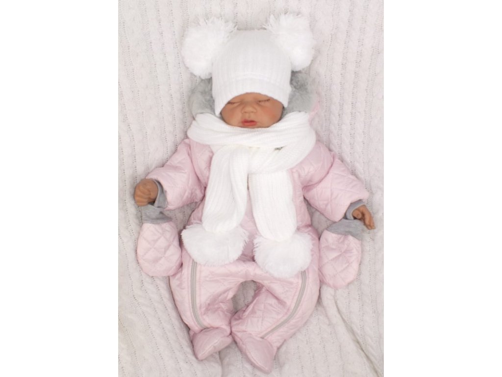 Z&Z Zimní prošívaná kombinéza s kožešinou a kapucí + rukavičky - sv.růžová