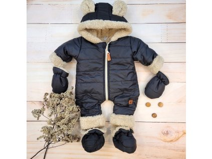 Zimní kojenecká kombinéza s kapucí a oušky New Baby Pumi grey