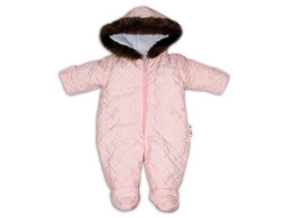 Kombinéza s kapucí a kožíškem Baby Nellys ®prošívaná - sv. růžová