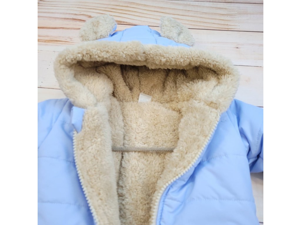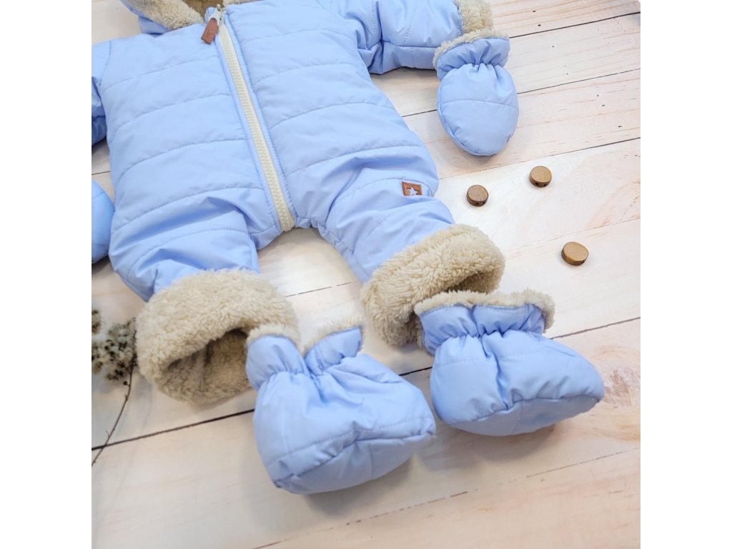 Zimní prošívaná kombinéza s kožíškem a kapucí + rukavičky + botičky, Z&Z - modrá